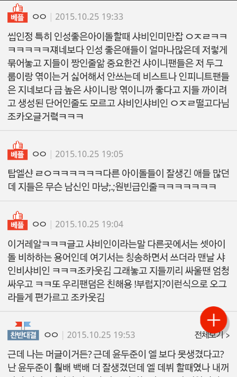 댓글도 타팬들 합심해서 총공화력보태니까 장난아니네 ㅋㅋㅋ 어그로들이 평소에 부들부들하다가 '이때다!'싶어서 달려든 걸로밖에 안보임