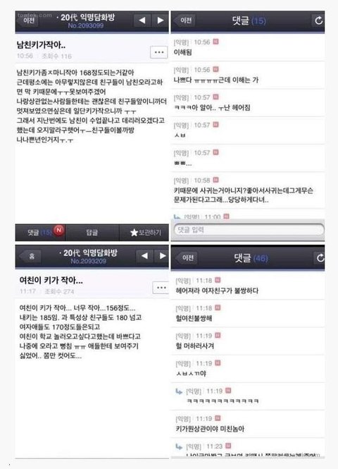 남친이 키가 작아 vs 여친이 키가 작아