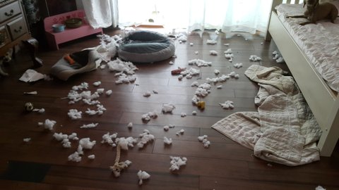 벽지는 붙이는족속 다뜯고, 화분도 다먹고