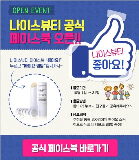 나이스뷰티 페이스북 들어가서 좋아요 누르고 공유하기 하면 참여완료고요!