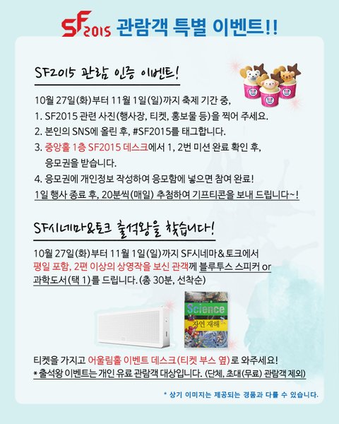 자세한 사항은 공식 홈페이지(http://sf2015.sciencecenter.go.kr)를 참고해 주세요.