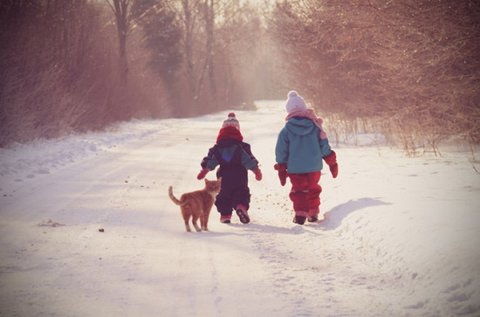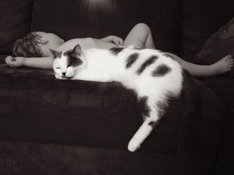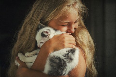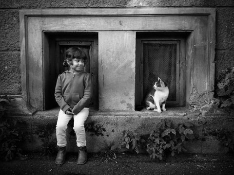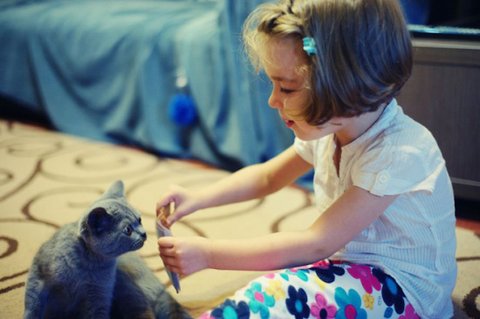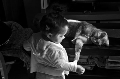 아이와 고양이의 순수한 우정