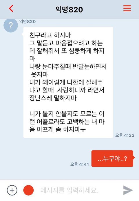 좀 전에 갑자기 익명앱으로 메시지가 왔는데