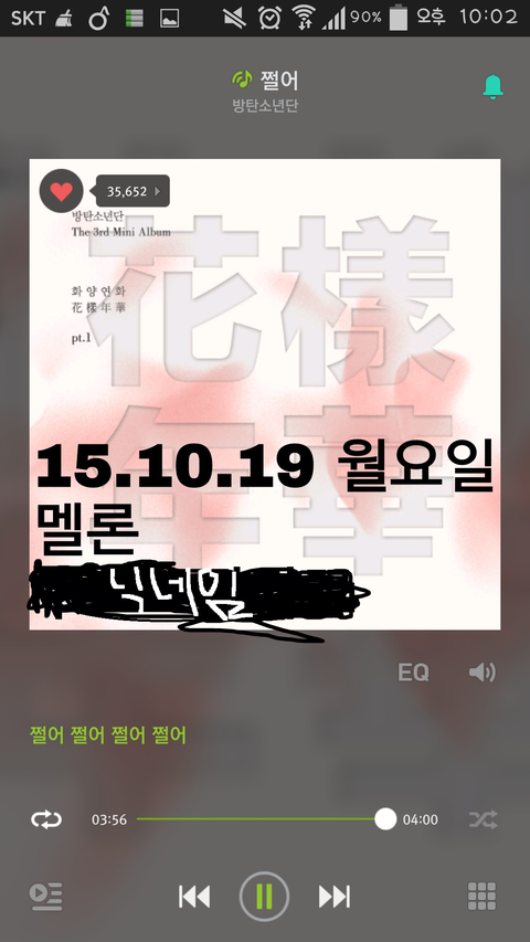 그거 아이콘 떠있고 날짜, 요일, 음악사이트, 닉넴, 하트누르고