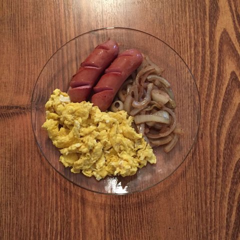 배는 고파서 얼른 뭔가 해먹어야겠는데 딱히 떠오르는 것도 없고 해서 간단히 소세지구이와 양파볶음,스크램블 에그 해서 먹었습니다!
