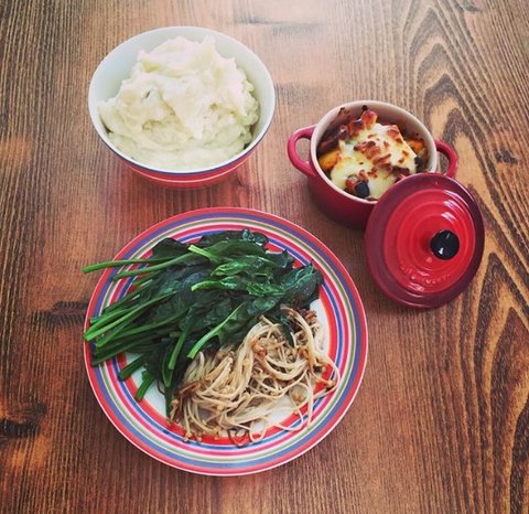 가지,애호박,파프리카,소고기,방울토마토 넣어서 라따뚜이 만들고 매시드 포테이토와 버터에 볶은 시금치와 버섯 곁들여 먹었네요 (감자를 워낙 좋아하는 편이라 저렇게 한가득..)