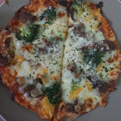마트에 파는 또띠아 사다가 시판 토마토소스 바르고 토핑 얹어서 200도 예열 오븐에 10분 구웠어요. 처음 해본 피자인데 비주얼도 좋고 맛도 좋아서 대만족.