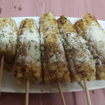 옥수수 부자였을때 얼려놨던 옥수수에 간마늘 넣고 녹인 버터 바르고 오븐에서 구웠어요.