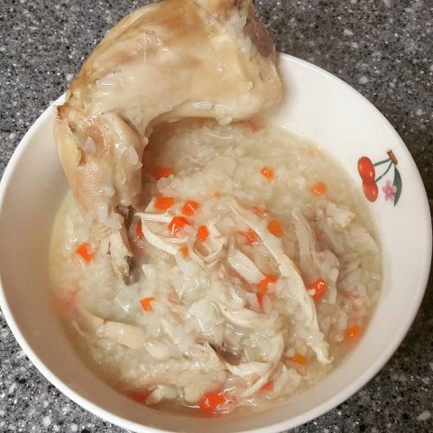 그래서 아침에 먹기 좋게 죽으로 만들고 그래도 닭은 뜯어야 제 맛 이기에.. 닭다리 하나 남겨둠
