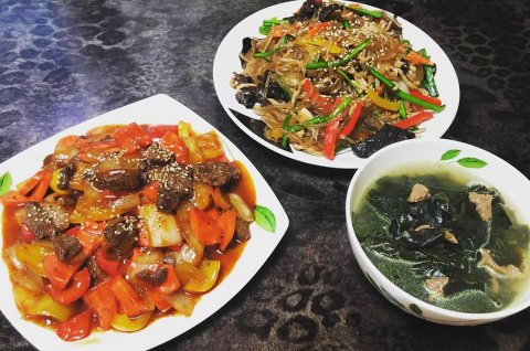 동생의 20대 마지막 생일 상 (잡채+찹스테이크+ 미역국)