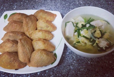 동생의 아침 상 (유부초밥 + 부추두부계란)