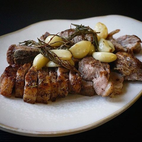로즈마리와 마늘을 함께 넣고 구워낸 오븐 돼지고기 입니다. 정확한 부위는 잘 모르겠네요 ㅜㅜ