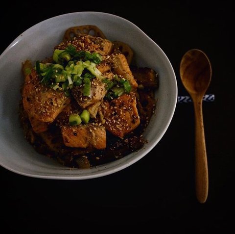 연어 덮밥입니다. 구운 연어위에 돈부리 소스와 야채를 올려서 먹었는데 생각보다 맛있네요.