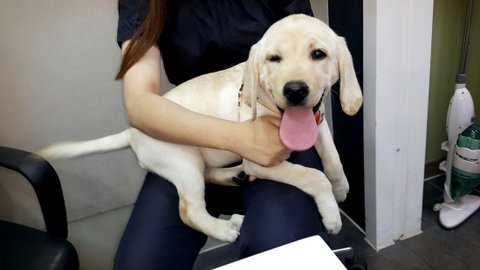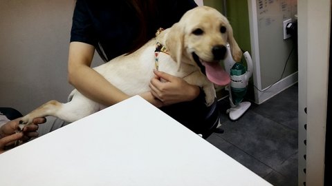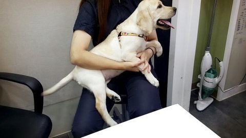 병원갔을때 10kg가 되버린 건강이를 보조선생님이 힘들게 안고있는 모습이예요 ㅎㅎㅎ