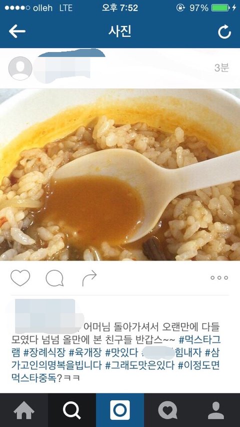 장례식장에서 먹은 밥 사진 찍어서 먹스타그램 올린친구. 제정신 아닌거 맞지