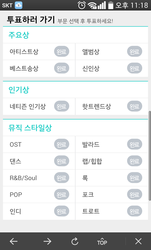 겁이랑 빅방 선배님들거만 투표하지말구 혹시 모르니까 모든 장르 투표 완료하기!