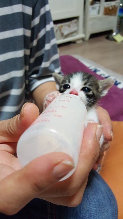 이 생각없는 집사가   뒷일은 생각못하고 젖먹이를 그만  ....