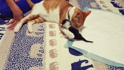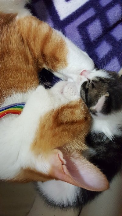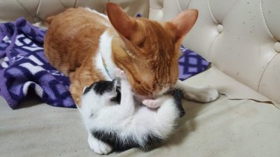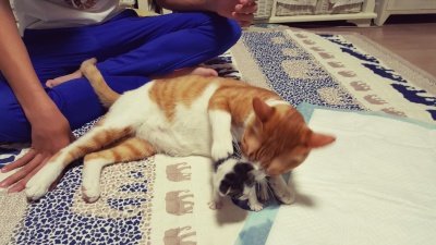 어느날부터 갑자기 열심히 핥아주며 엄마냥이 한다는 행동을 하더라구요.