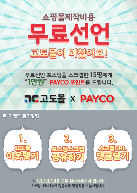 현금처럼 사용 가능한 PAYCO 포인트 1만원을 GET 할 수 있는 고도몰 이벤트 !!!