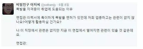면접관이 갑자기 조용해지고 식은땀을 흘리기 시작했다