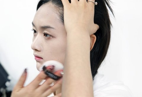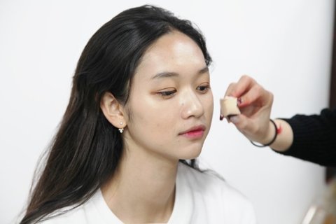 창백하고 차가운 피부를 연출하기 위해서 최대한 화장이 두껍게 느껴지지 않도록