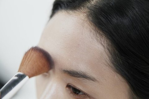 밝은 색상의 섀도우를 이마의 T존과 광대 부분에 하이라이팅 해주세요.