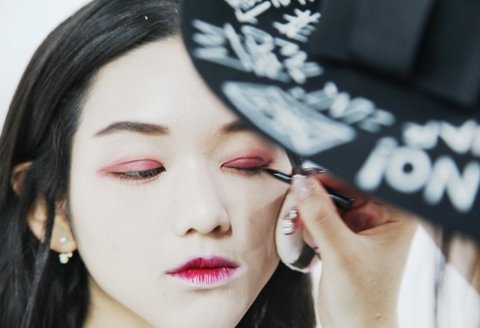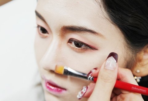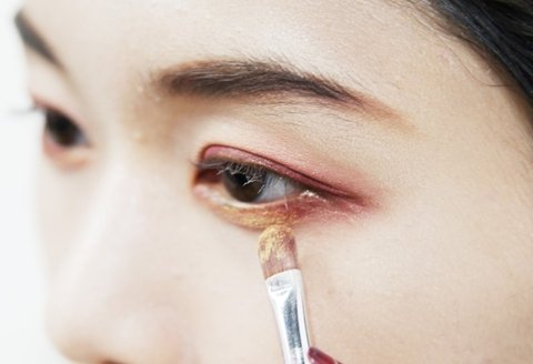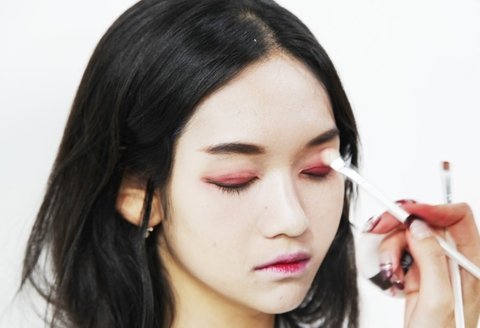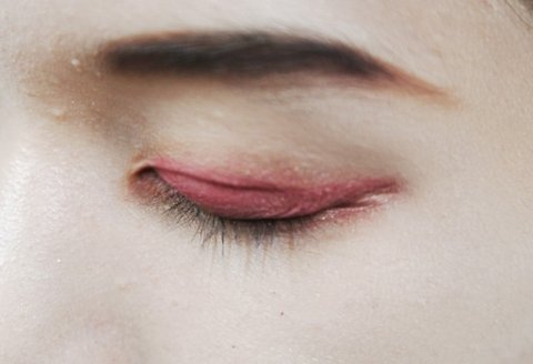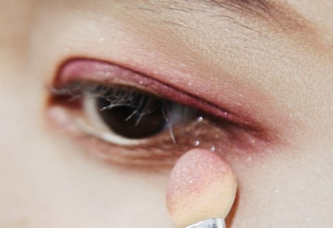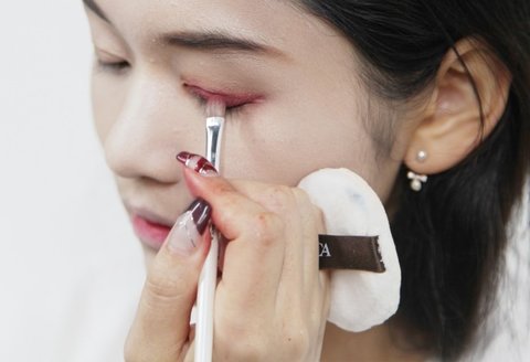 쌍커풀 라인에 버건디 색상을 펴 바르는 작업이 완성됐다면 동일한 색상의 섀도우로