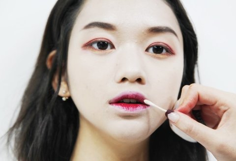 면봉을 이용해 입술의 중앙 부분과 가장자리 부분이 그라데이션 되도록 톡톡톡 두드려주세요.