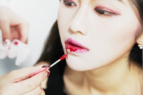 이제 할로윈 맞이 뱀파이어 메이크업의 상징, 피빨강 입술을 연출할 단계랍니다.