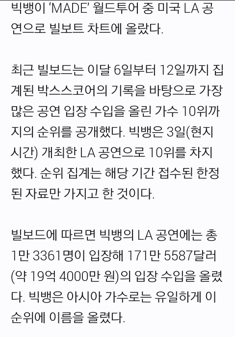 와우 빅뱅 빌보드차트10위등극