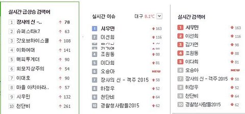 어제도 어그로들이 하루종일 민석이 까면서 실검요정 시우민 이제 실검안오르냐고 조롱하니까 3대 사이트에 시우민 동시실검으로 보여주네ㅋㅋ