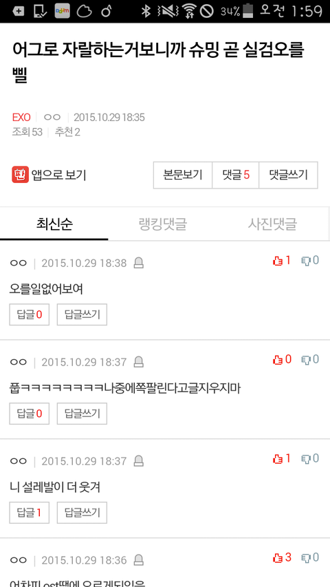 어그로인지 악개인지 시우민 실검갈일없다고 조롱하더니 실검든거보고 무슨생각했을까?