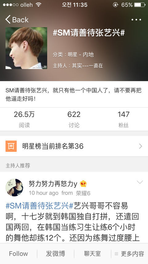 슴 제작 50부작 드라마 들어간다니까 너무 굴린다고 항의잼ㅋㅋ"에셈은 장이씽에게 잘해줘라"라는 태그 걸고 장사장 스케쥴이 얼마나 빡셌는지 애가 얼마나 힘든지 달리는 중스엠은 장사장한테 잘하라고 유일한 중국인이니까 그를 강제로 떠나게 하지말래
