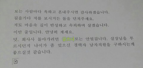 그냥 기왕 관두기로 마음먹은거.. 그냥 이제 안볼사람이니까 걍 나가도 될텐데..굳이 저렇게 보냄 ㅋㅋ내가 어떻게 이 내용을 가지고있느냐...