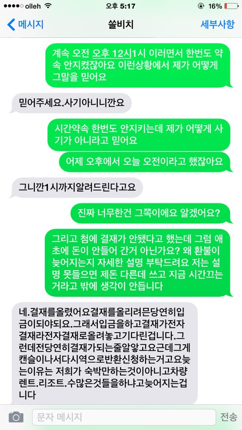 문자로 거짓말이면 그냥 환불해주고 진짜면 진행상황을 알려달라