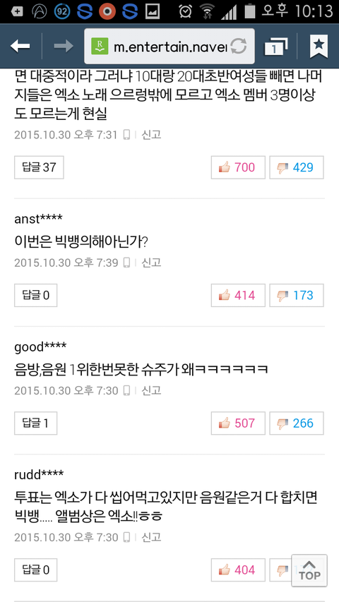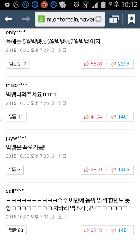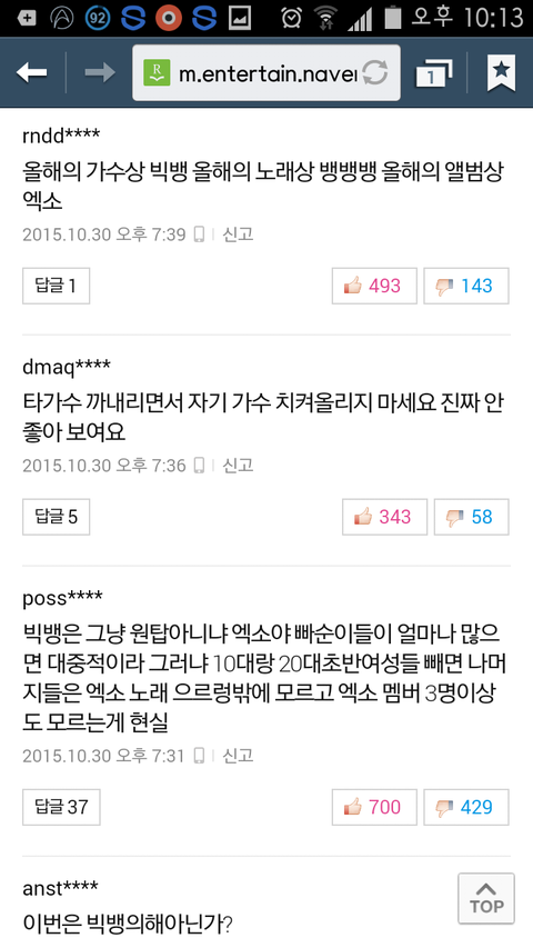 진짜 거짓말아니고 올해초 루저컴백기사때부터 베댓보면 항상 엑소언급함 그것도 까는댓글로