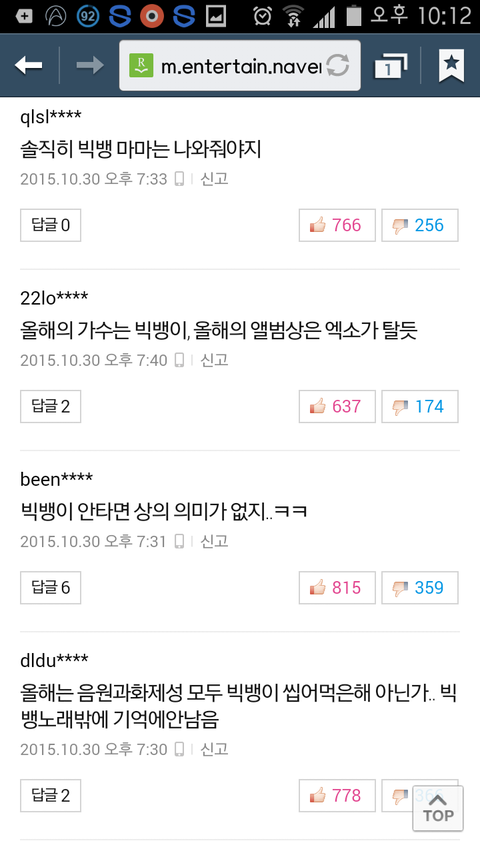 +))저댓글이 뷮이썼는지어떻게아냐그러는데... 빅뱅기사에 빅뱅찬양하면서 저런식으로 글쓰는데 당연히 뷮아니야?? 그리고 한두개가 아니였어 베댓도 기사도 한두개가아니고 루저컴백때부터 매번 봤어 이럴줄알았으면 캡쳐해놀걸그랬네 ㅋㅋㅋㅋ