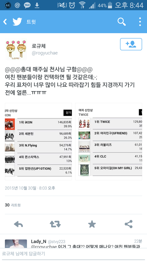 저쪽 팬분들도 여신인상 2위인 게 아쉬울 텐데 협력(?) 동맹(?) 맺으면 안되나?