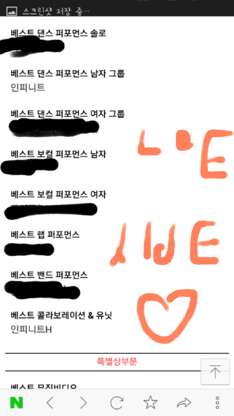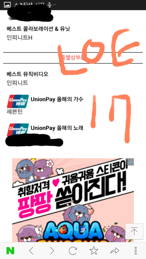 근데 올해의 노래는 잘못눌러서 가렸어요 ㅠ