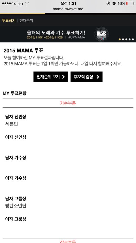 우선 2015 MAMA 투표는 마마 홈페이지에서 할수있어!