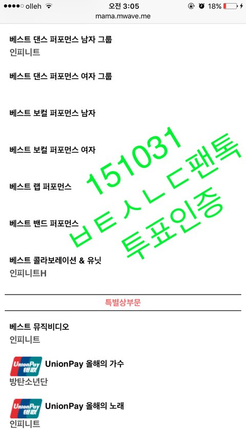 아까 인증글 한번 올린 아민데 이건 트위터 계정이에요! 우리 열심히 도와서 방탄이랑 인피니트 둘다 상받아요!! 방탄 인피니트 화이팅!!!!!