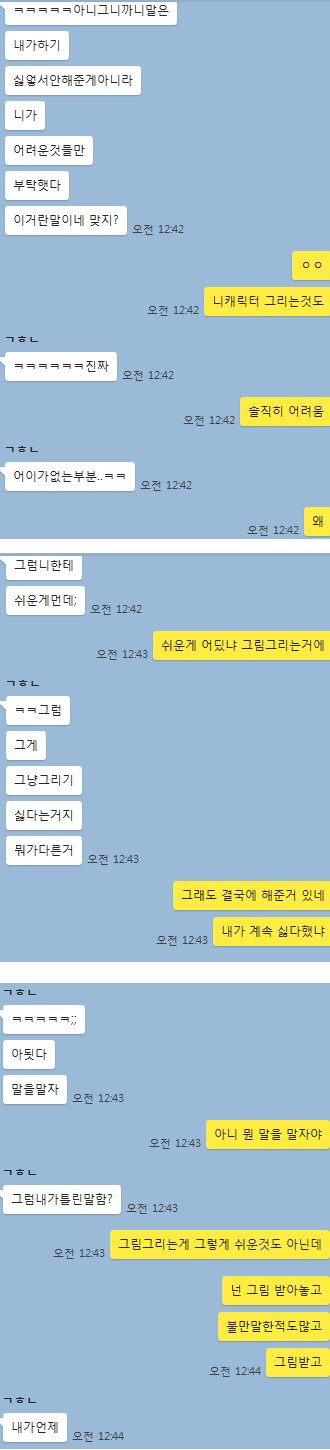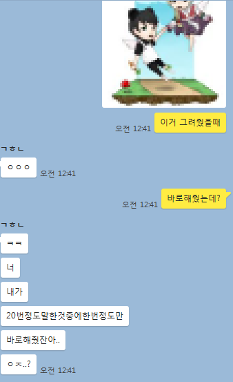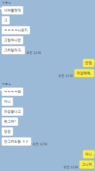 저는 처음 부탁을 받았을 때는 바로 들어줬고 열심히 그려서 줬으나