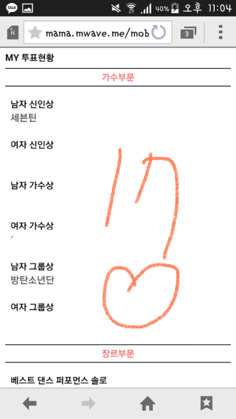 캡쳐하다가 시간이 너무 늦어져서 인증한것만 일단 캡쳐본 들고왔어요 ㅎㅎ통 9번 투표했구요 12시 지나면 또 할거에요!!투표 해주시고 인증까지 해주샤서 너무너무 감사드리구요 모두들 힘냅시다!!!