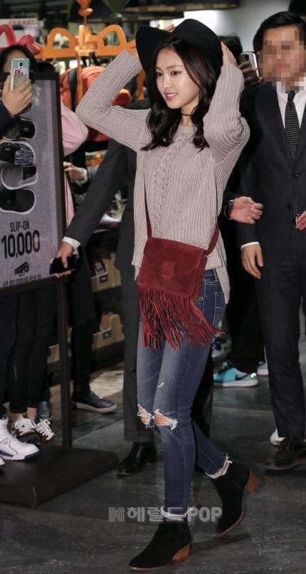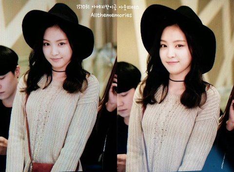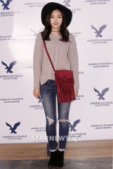 페레모 쓰고 니트에 청바지라 귀여운 매력을 한층 업뎃