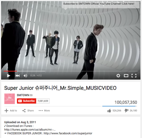 SM 남자가수 최초 유튜브 1억뷰