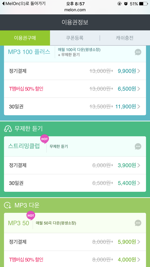 나 스밍권 지금 결제하려하는데 사진에있는 무제한듣기 구매하는거야?
