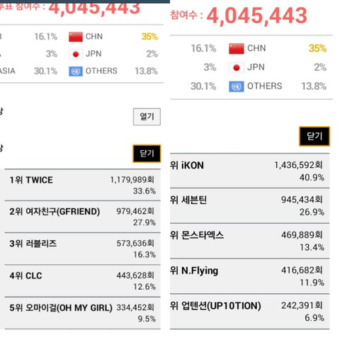 총 투표 참여수는 유니온페이 감안한다해도 부문별끼리도 투표수 일치하지않음. 마마투표 특성상 모든 투표를 같이해야하는데 투표수가 틀린게 말이안됨.