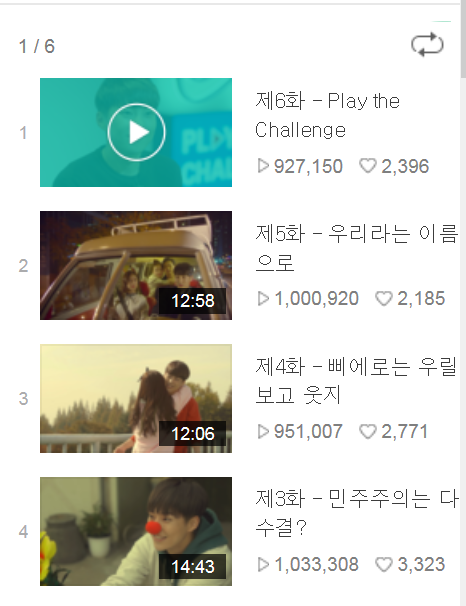 근데 4화보다 5화가 먼저 100만을 넘겼네 4, 6화도 곧 넘길 수 있을 거 같아