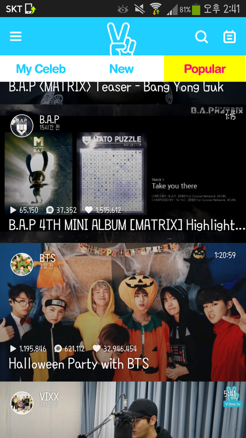 우리 할로윈 뷔앱중에 제일높아? 조회수나 하트나 댓글...조회수ㄷㄷ
