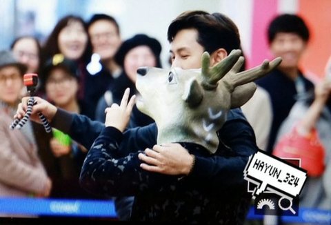 그래서 이 날 사슴탈 쓴 팬 등장~!